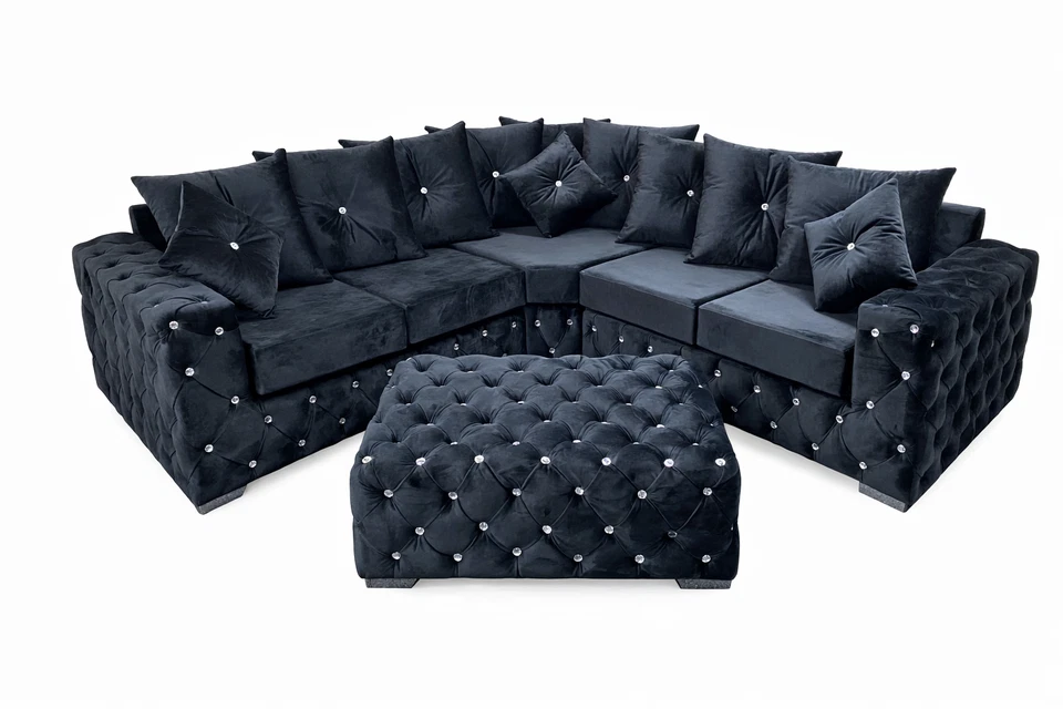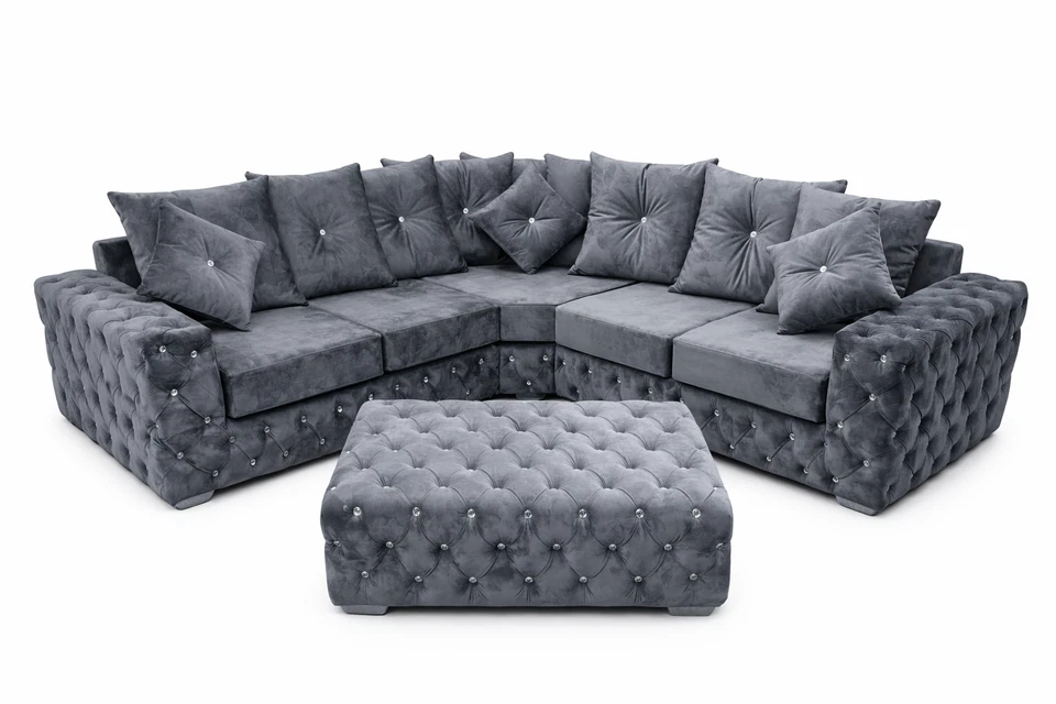 Ashton Chesterfield Corner Sofa Plush Velvet 4 5 6 7 Seater UK Manufactured
