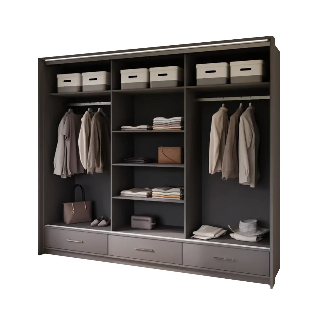 These wardrobes come in classic black colour. The neutral colour fits in a variety of interiors. It allows you to organise your bedroom without disturbing the colour combinations in the bedroom decor.