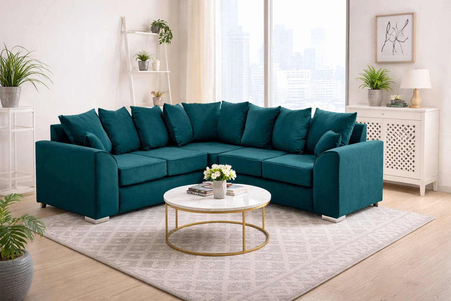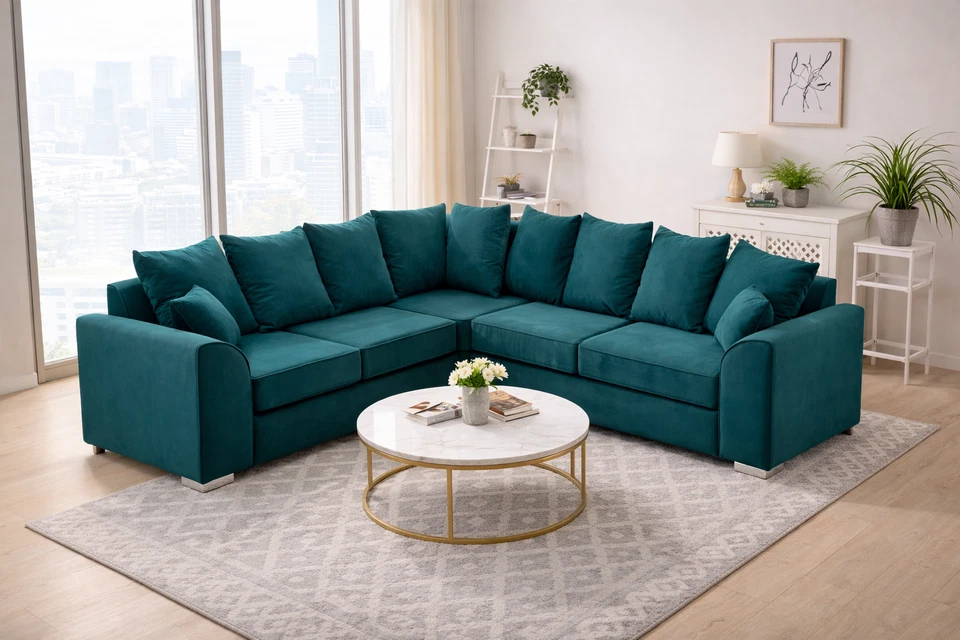 Dylan Plush Velvet 2C2 Corner Sofa – Luxury UK Made – Free Matching Footstool