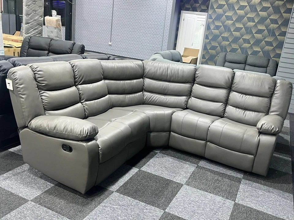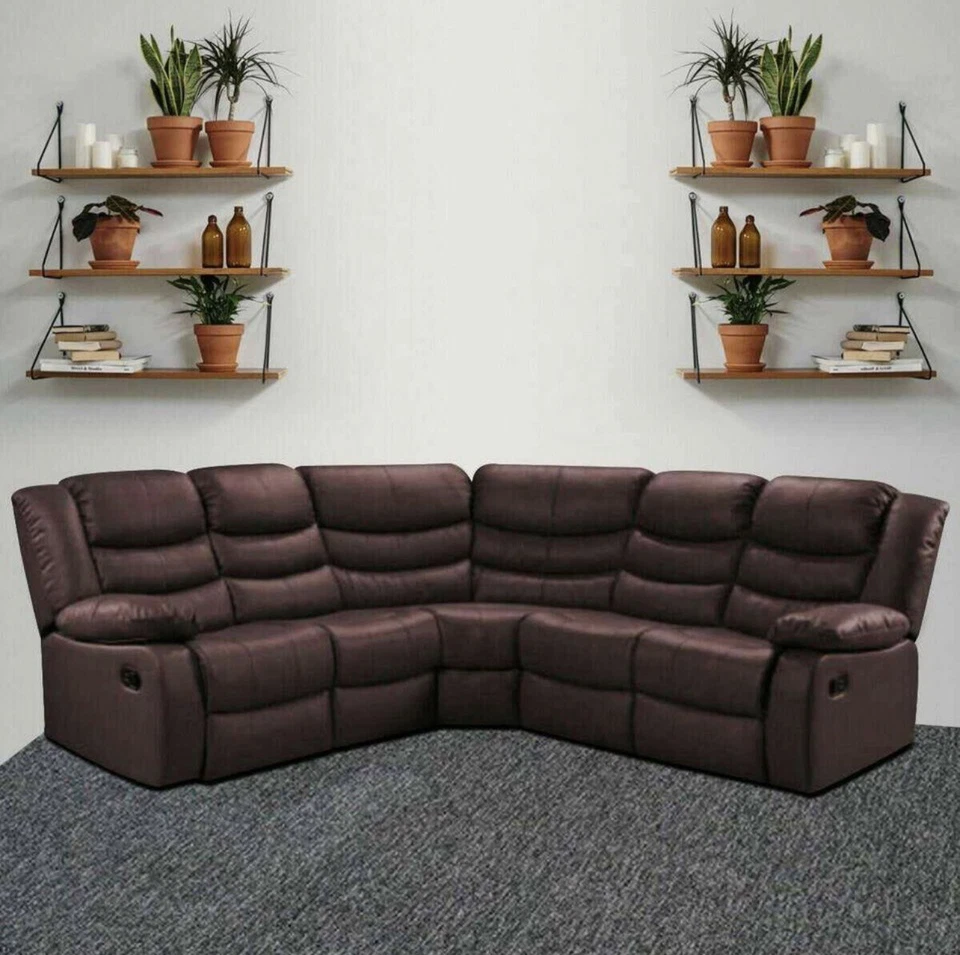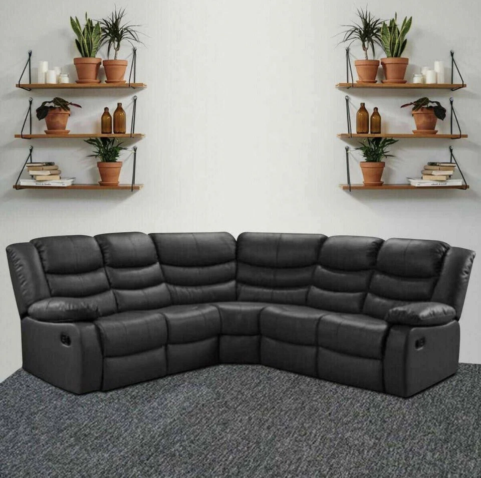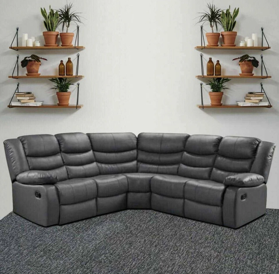 Leather Recliner Corner Sofa/ Black/ Grey/ Brown