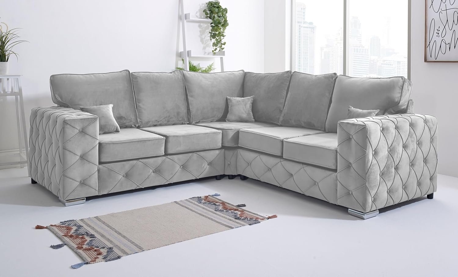 Sofahub Lilly Silver Plush Velvet Sofa Set | 2 Seater, 3 Seater, 3+2, Corner, Armchair & 3+2 with Coffee Table | Modern Living Room Sofa with Foam Seat…
