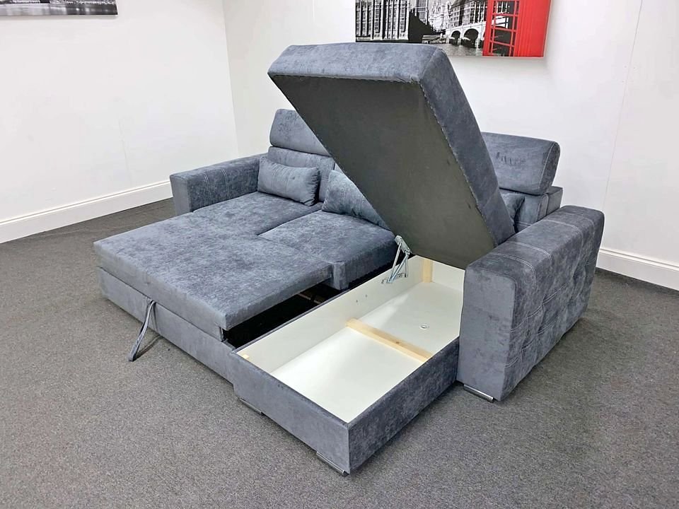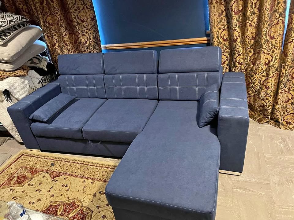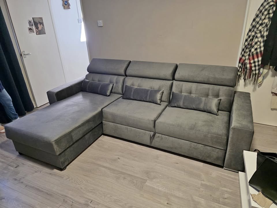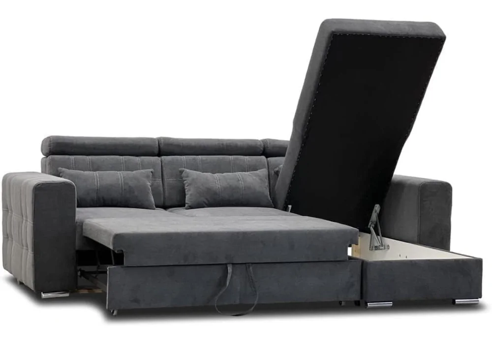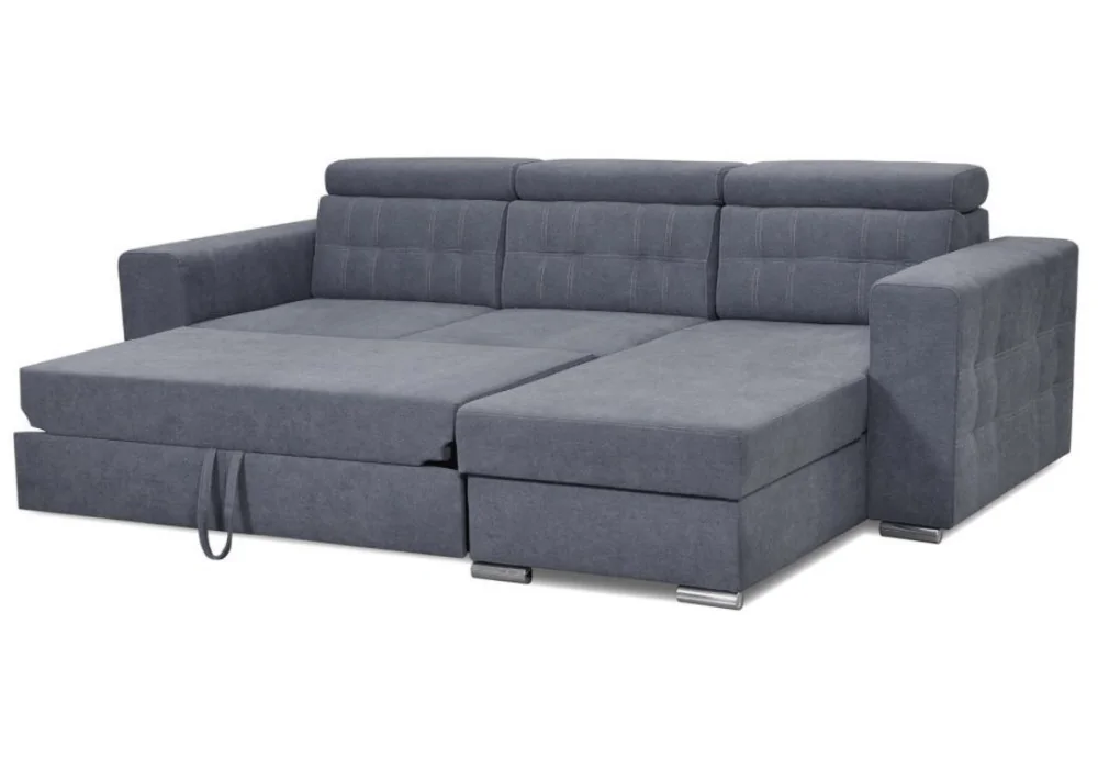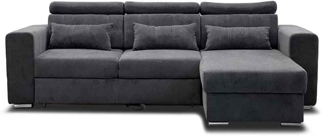 The Luca L sofa bed combines comfort and style with its premium fabric and solid hardwood frame. Easily convert it into a bed by pulling out the element under the seat and raising it to seat height. Featuring an adjustable headrest, storage for bedding, and a universal design, this sofa bed is a versatile addition to any room. Dimensions: 250 cm width, 97 cm height, 160 cm depth, with a sleeping area of 134 x 205 cm.