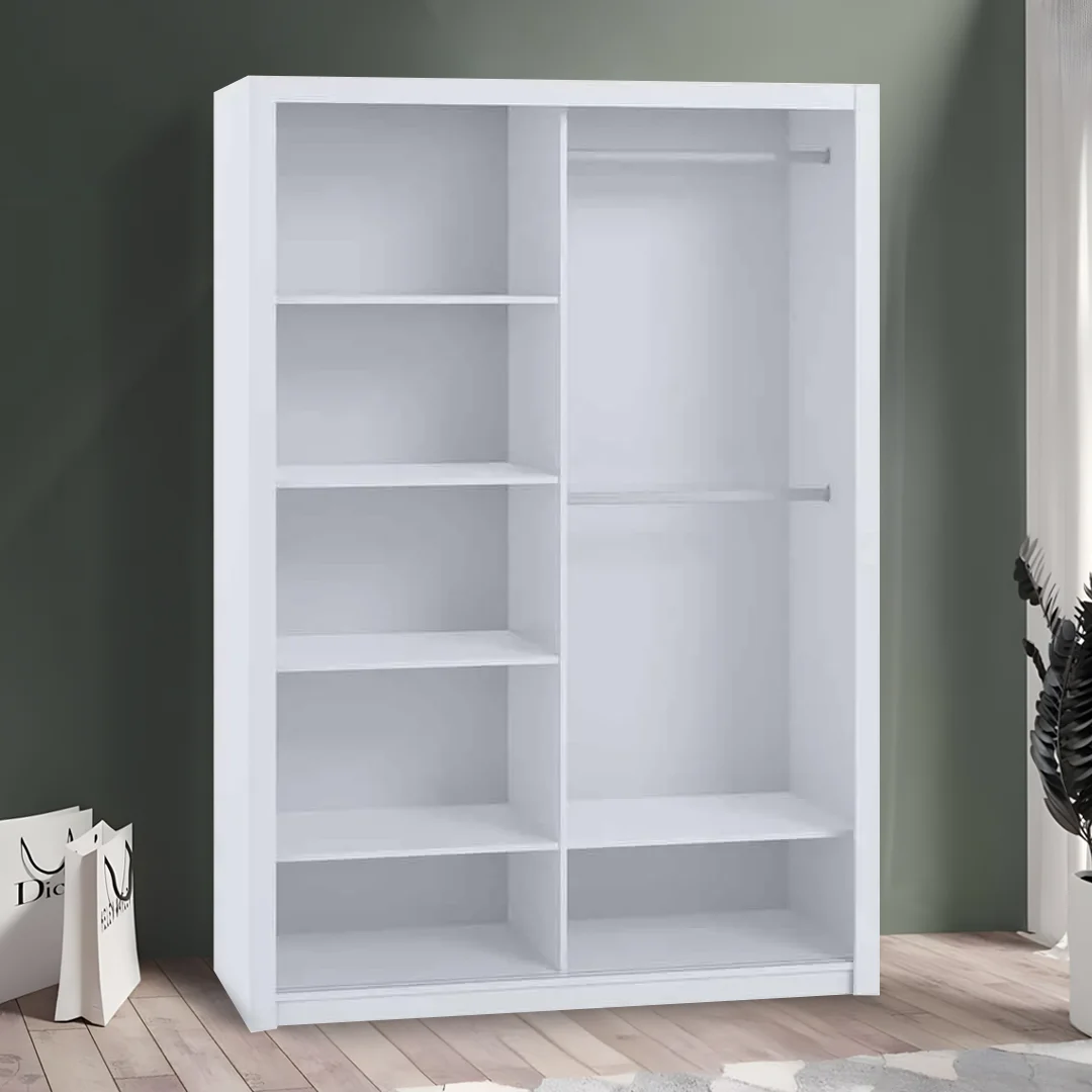 Our sliding mirror wardrobe 150cm utilises chipboard in its construction and provides a sturdy and dependable way to arrange your stuff, giving you peace of mind for a longer time.